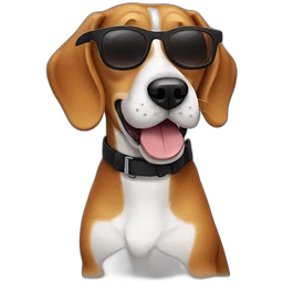 Beagle wearing sunglasses and a Santa hat smiling emoji