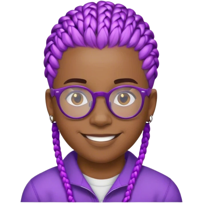 smiling black boy wearing glasses with purple short cornrow hair emoji | AI Emoji Generator