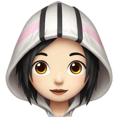 Japanese boy, with cute black hair and with a bone hairclip wearing a white hoodie with pink stripes emoji