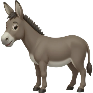 Full body miniature donkey with a happy face smiling with its head turned emoji