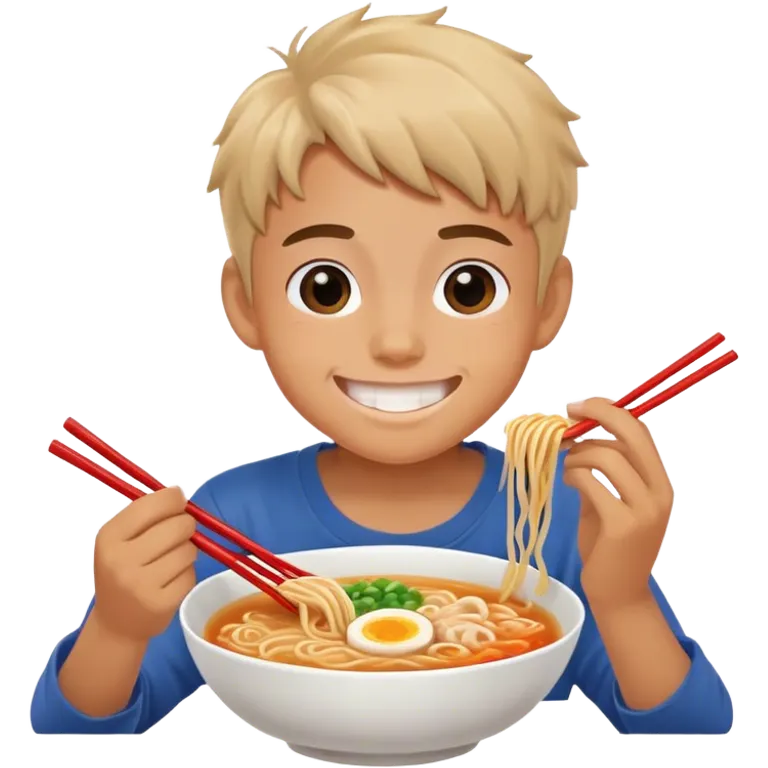 smiling boy eating Ramen emoji | AI Emoji Generator