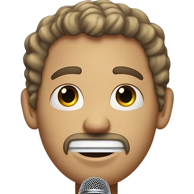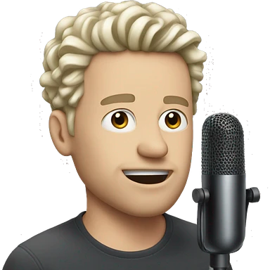 white man with short curl hair goes to the face with nose piercing sing in a mic emoji
