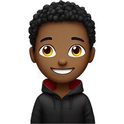 smiling boy in grey hoodie with black hair and back ayes emoji