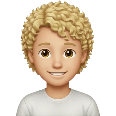 smiling boy in white shirt blonde curly hair emoji