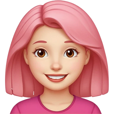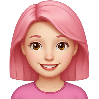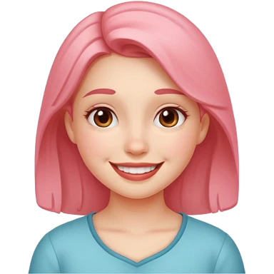 Now tied up her hair in a bun, the on her head is black, but blue bang on front. Bigger eyes and brighter smile, show teeth while smiling emoji