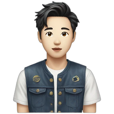 K-pop male idol with black hair, smiling face, wearing flashy stage costume emoji