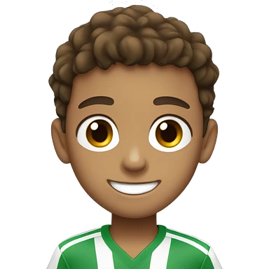 smiling boy with yellow skin and brown hair that’s swooped onto the left side of his head, he has brown freckles and pink blush emoji | AI Emoji Generator