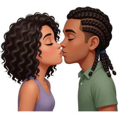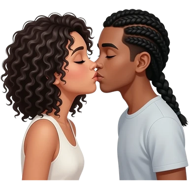 two light skins both the same skin tone kissing girl has curly black hair and boy has black braided emoji