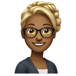 medium tan asian woman with long black hair tied 1 messt bun on top of head, round brown eyes, white v neck blouse. shes smiling and friendly. emoji