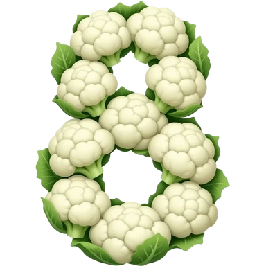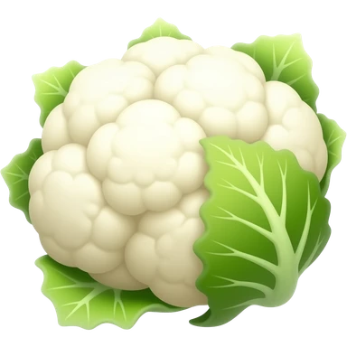 3D cauliflower emoji character with big eyes 👀, surrounded by a few green leaves 🍃, holding a small mirror 🪞. The character is floating in the air with no legs visible, on a pure white background. emoji