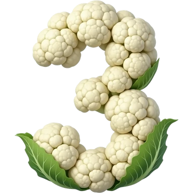 3D cauliflower character with big eyes 👀, a few green leaves 🍃, and leafy hands holding a small mirror 🪞 while gazing into it. emoji