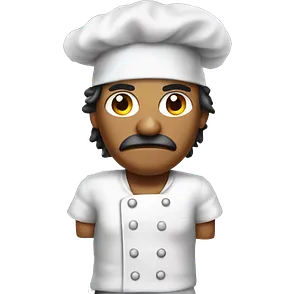smiling man with a brown mustache enjoying sunny day with a chef hat on emoji