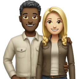 smiling couple in casual attire with dark haired man and blonde woman emoji