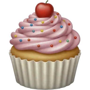 cupcake with pink icing, cherry on top, smiling face emoji
