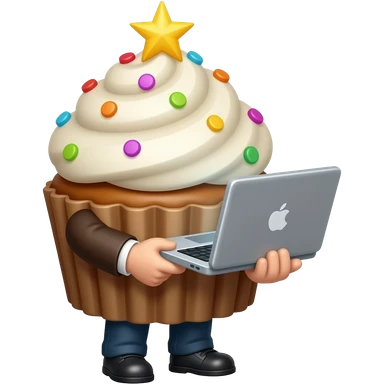 pixel cupcake, concentrated on work with a laptop in its hands emoji