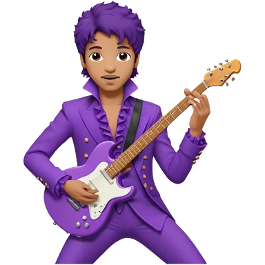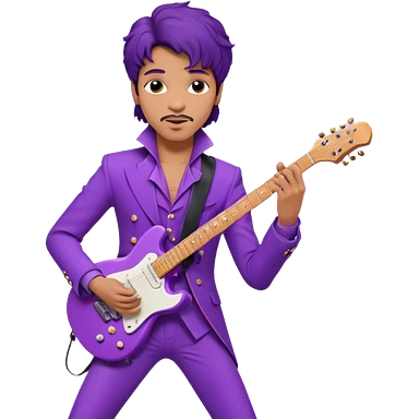Cinematic realistic portrait - Singer Prince in the characteristic guitar pose from the movie Purple Rain emoji