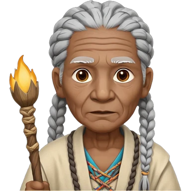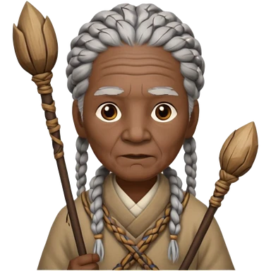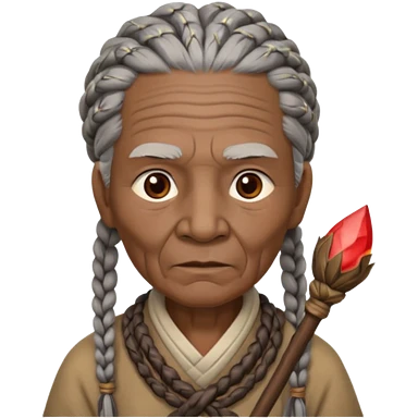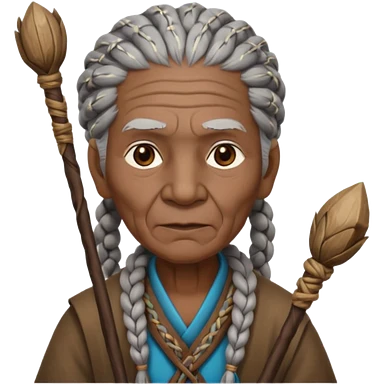 An elderly tribal leader with gray braids, wooden staff, and warm wise eyes. emoji