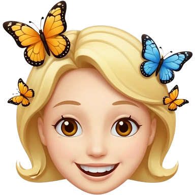 standard exploding head emoji but smiling and with butterflies going out of head emoji