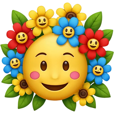 Smiling emoji with flowers that move emoji