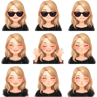smiling face, cute face, luxury face & loving face, laughing face, beauty face, sunglass face generates 7 different emoji wearing black color Abbayah sweet girl emoji
