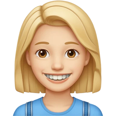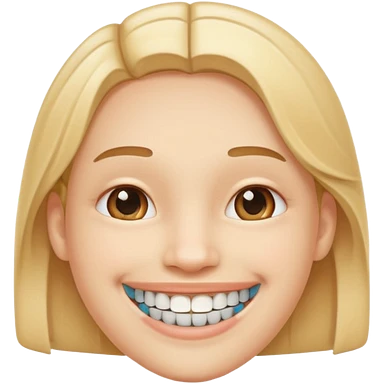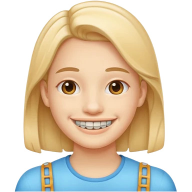 Girl with braces on her teeth smiling with chubby cheeks. emoji