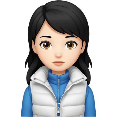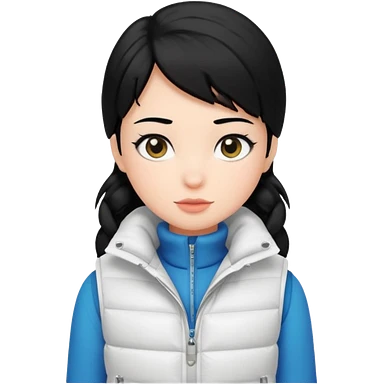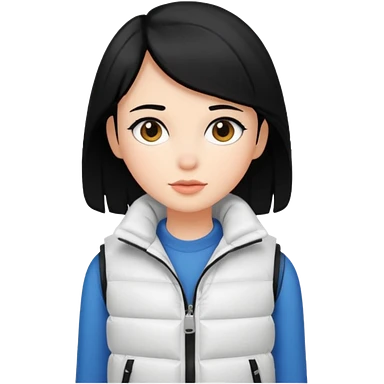 girl with black hair in a white puffer vest emoji