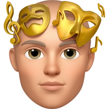 crea un emoji con notas musicales y mascaras de teatro de las de cara completa, en colores dorados emoji