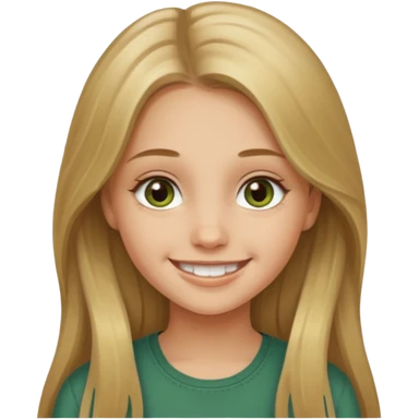 A smiling young girl with long dirty blonde hair and hazel green eyes emoji