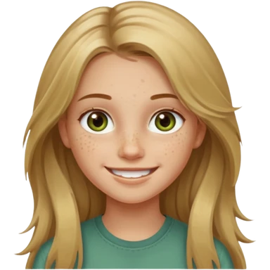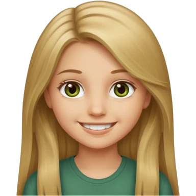 A smiling young girl with long dirty blonde hair and hazel green and brown eyes emoji