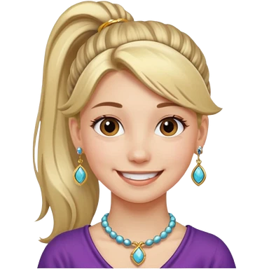 smiling girl with jewelry wearing shirt that says I heart Ice emoji