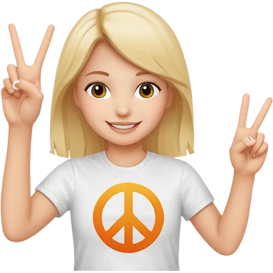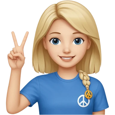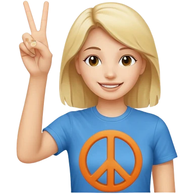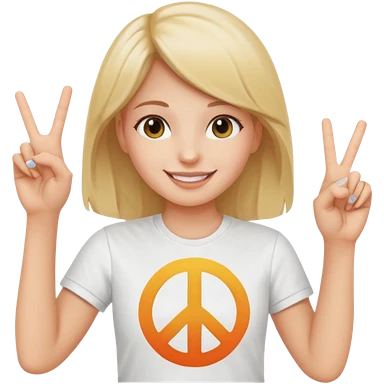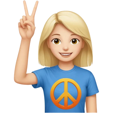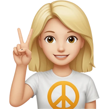 Blonde girl with peace sign emoji
