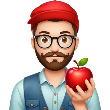 a hipster with short brown hair, glasses, a beanie, with a red jacket on, with a light beard emoji