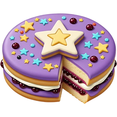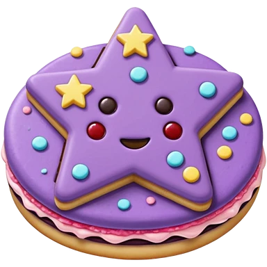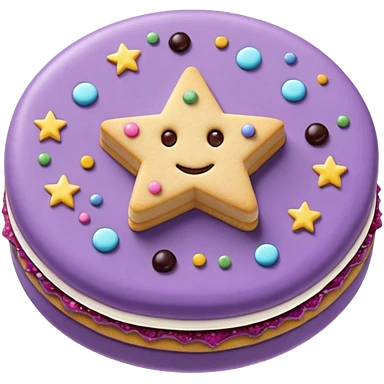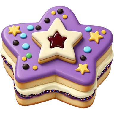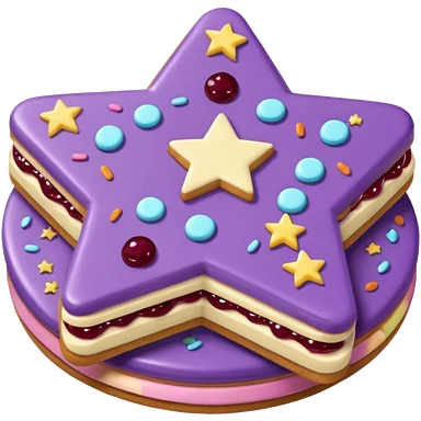 a pastel purple sandwich cookie with soft crumbly texture, a star-shaped jam cutout in the center showing glossy dark berry filling, and creamy filling with colorful sprinkles. Minimal emoji style, smooth shading, high detail, centered object, no background, sweet playful vibe emoji