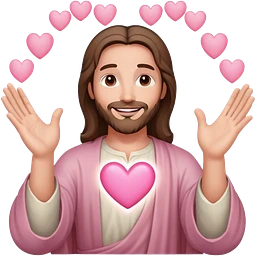 Smiling Jesus making light pink heart with hands emoji | AI Emoji Generator