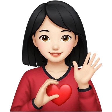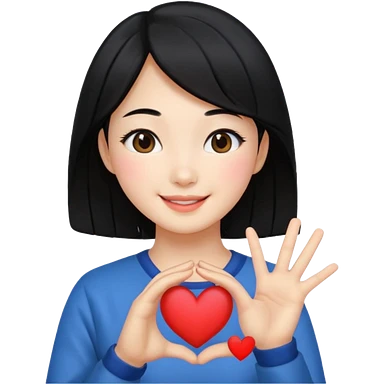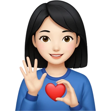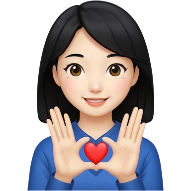 a korean cosmetics marketing expert women smiling with black hair, presenting emoji