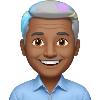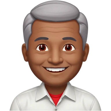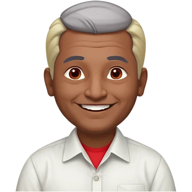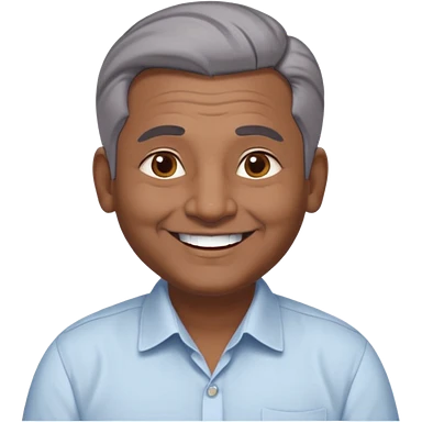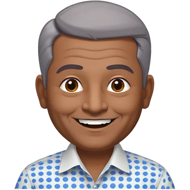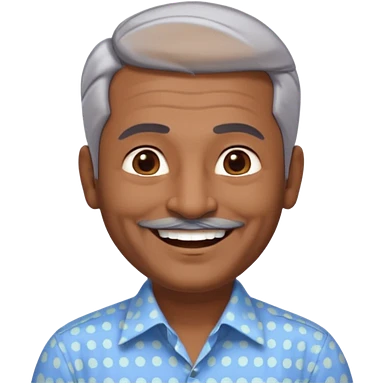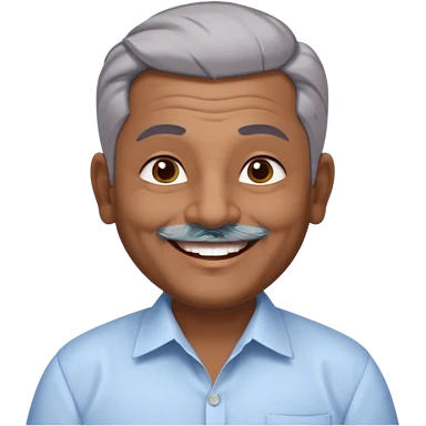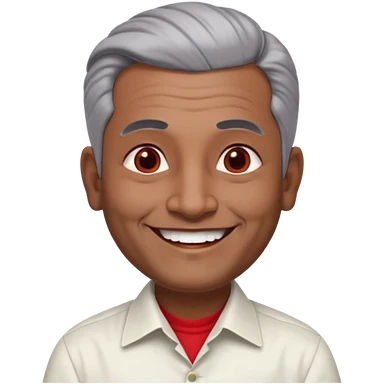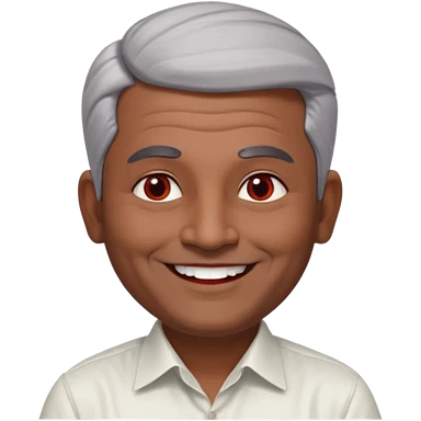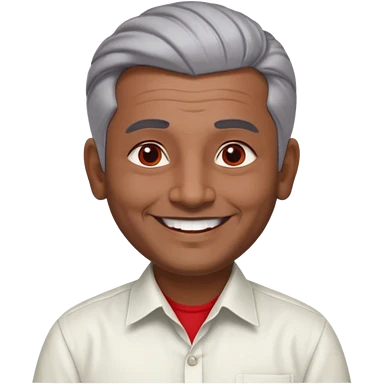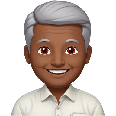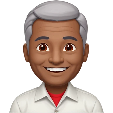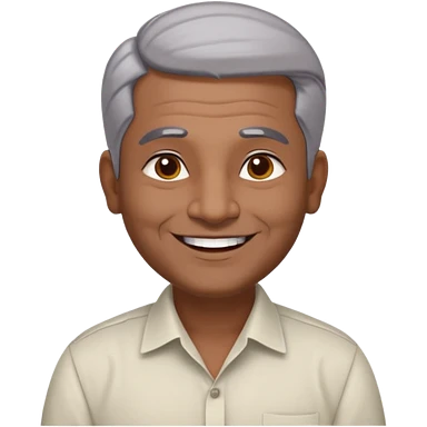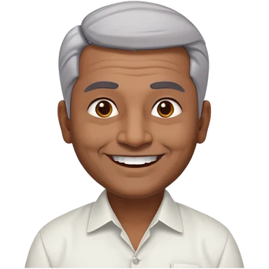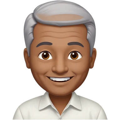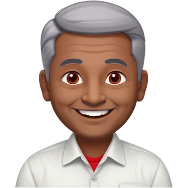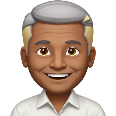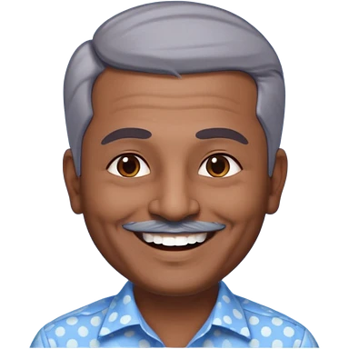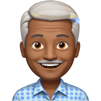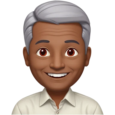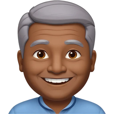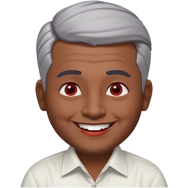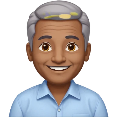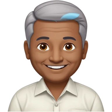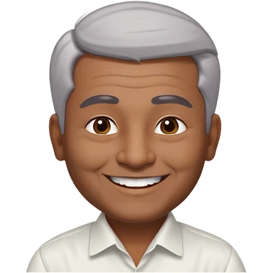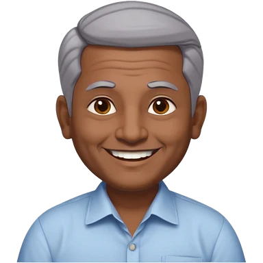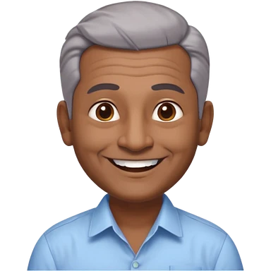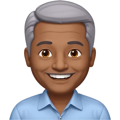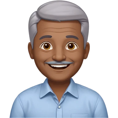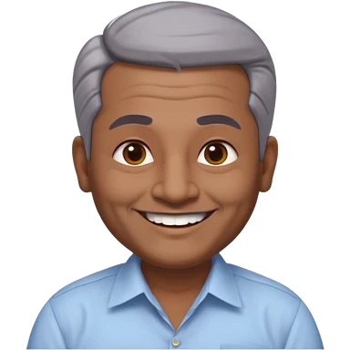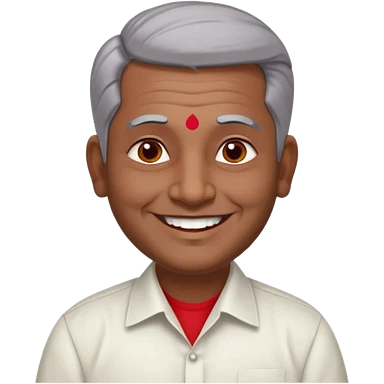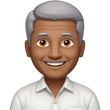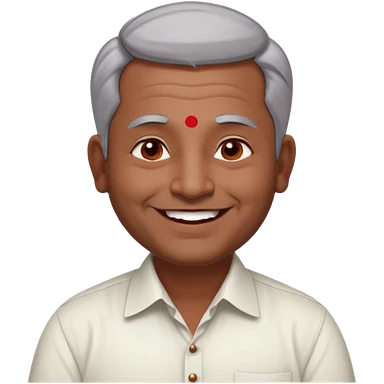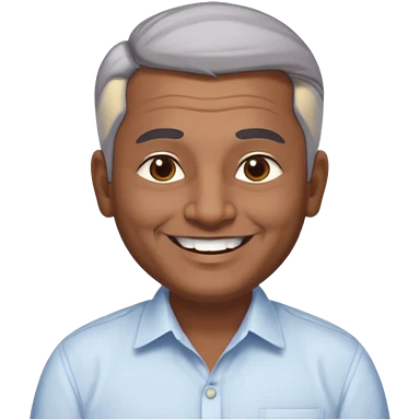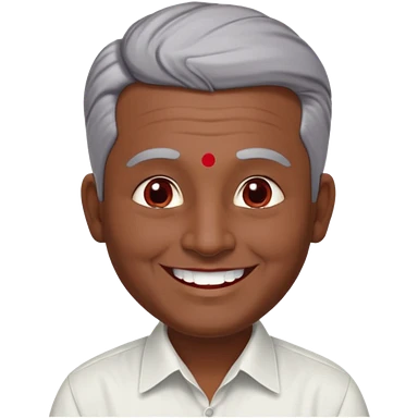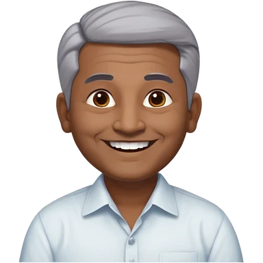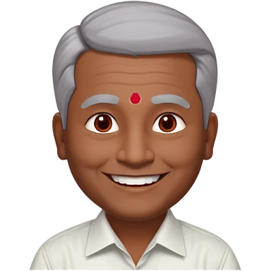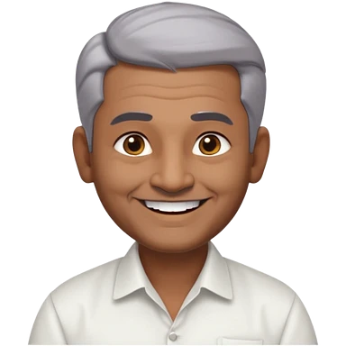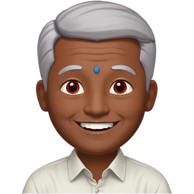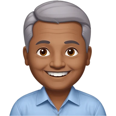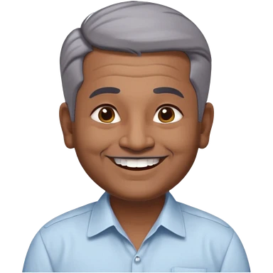 50 yr old indian man, dark skin, grey hair, big smile, white teeth, chubby, no moustache, clean shaven, young style hair, hair brushed back, 5 oclock shadow, dot on forehead, dress shirt emoji
