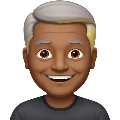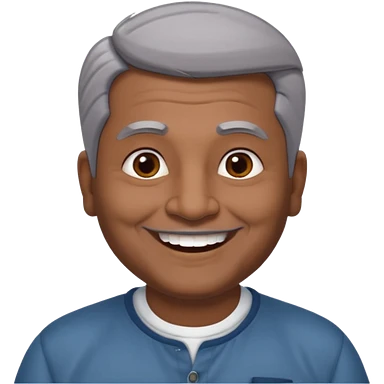 50 yr old indian man, dark skin, grey hair, big smile, white teeth, chubby, no moustache, clean shaven, young style hair, hair brushed back, 5 oclock shadow emoji