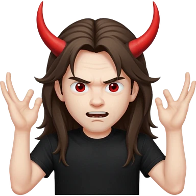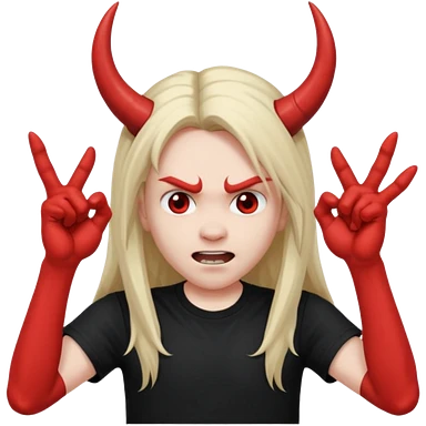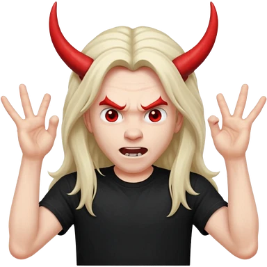 Long haired headbanging with hands in devil horns position emoji