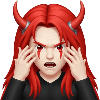 punk girl with spiky red hair devil horns gold eyes emoji