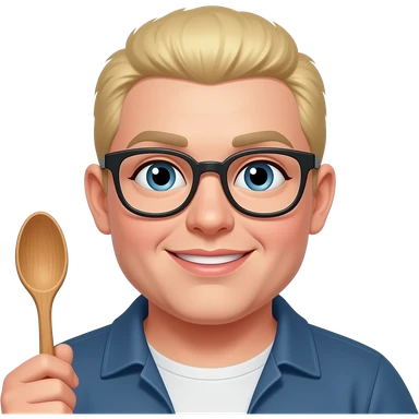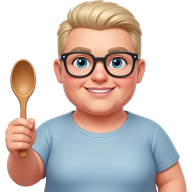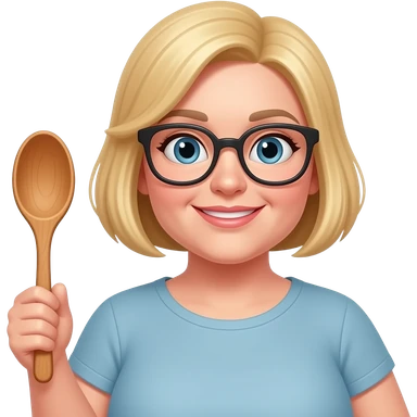blonde overweight woman, glasses, wooden spoon, buzz cut emoji