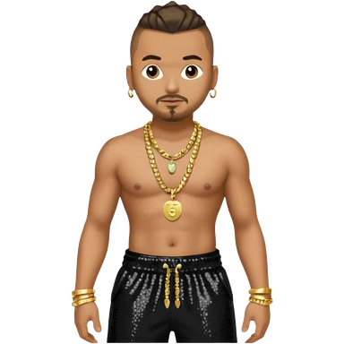 Sean Paul with black sequin baggy pants, shirtless with necklace emoji