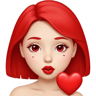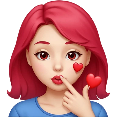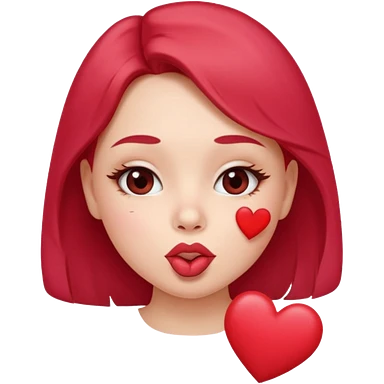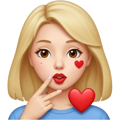 Emoji, girl's face blowing a kiss, puckered lips, small heart emoji