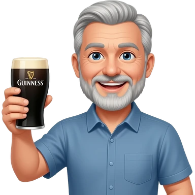 Smiling grey haired man with beard raising a glass of Guinness emoji