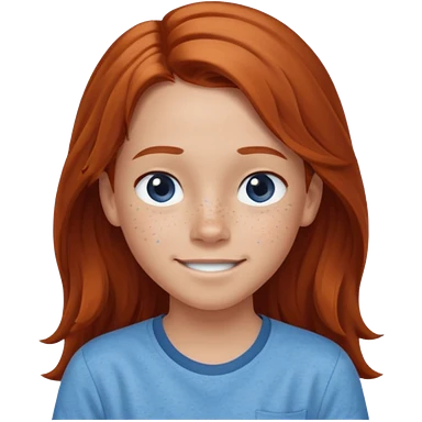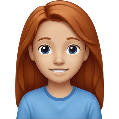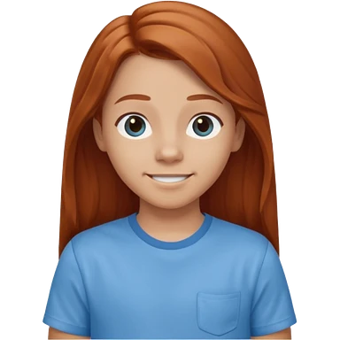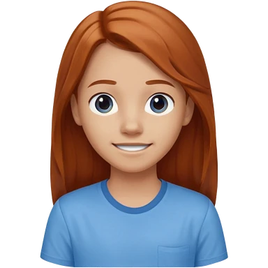 smiling shrugging emoji tween long auburn hair light blue shirt with a darker blue L emoji
