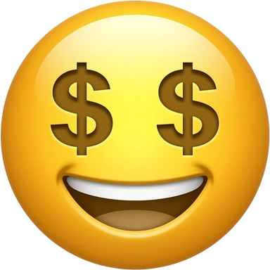 smiling cat with coins or dollar bills in its eyes, lively emoji style, mimicking cash eyes emoji emoji