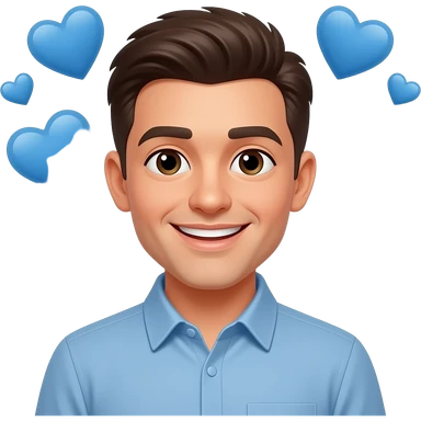 Smile very happily, but not creepy Extremely happy smile that is just happiness With a lot of blue hearts around the emoji, create style of APPLE’s emoji emoji