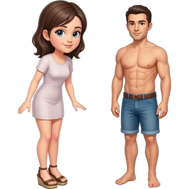 Naked woman, wedge sandals, slightly bent forward, standing directly in front of naked man emoji