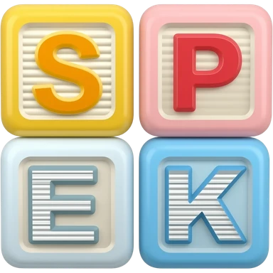 Five children's blocks forming the word "SPEAK" emoji