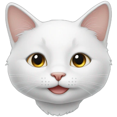 White cat smiling with teeth showing, pink inner ears, magenta purple eyes emoji