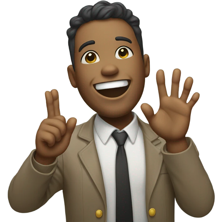 Smiling with all teeth with hand at attention emoji | AI Emoji Generator